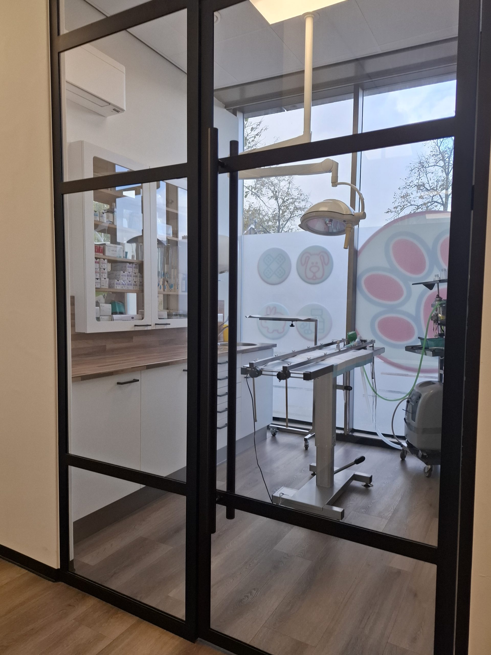 Achter de schermen hebben we o.a een operatieruimte, opname , rontgenkamer en gebitsruimte