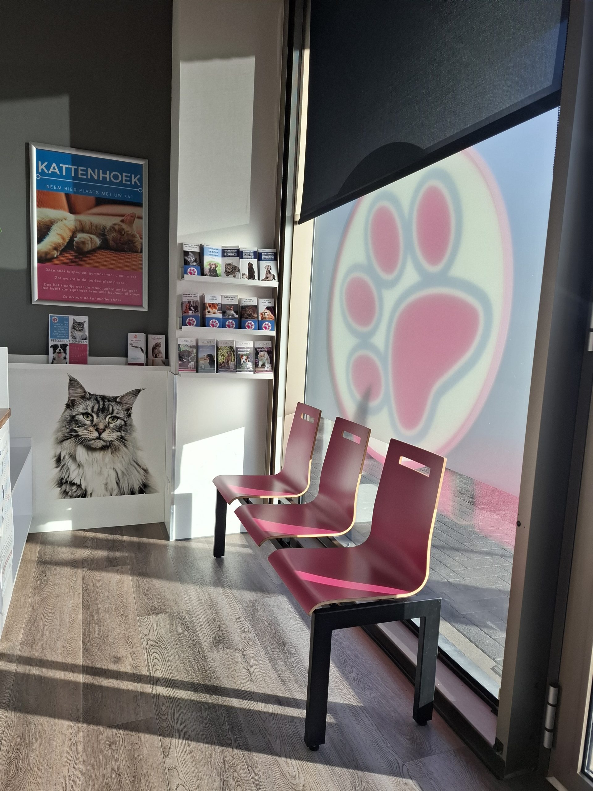 Onze wachtkamer is ook gescheiden. Zo hebben we een kattenhoek waar u als klant uw kat veilig neer kunt zetten op de kattenparkeerplaats.